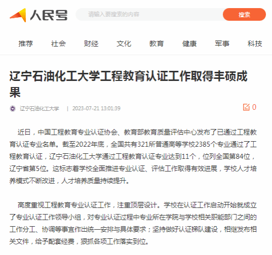编者按:近日,辽宁日报·北国号、人民日报客户端·人民号等媒体平台对我校通过工程教育认证专业达到11个,位列全国第84位,辽宁省第5位。这标志着学校全面推进专业认证、评估工作取得有效进展,学校人才培养模式不断改进,人才培养质量持续提升进行了宣传报道。现将相关报道转载如下: