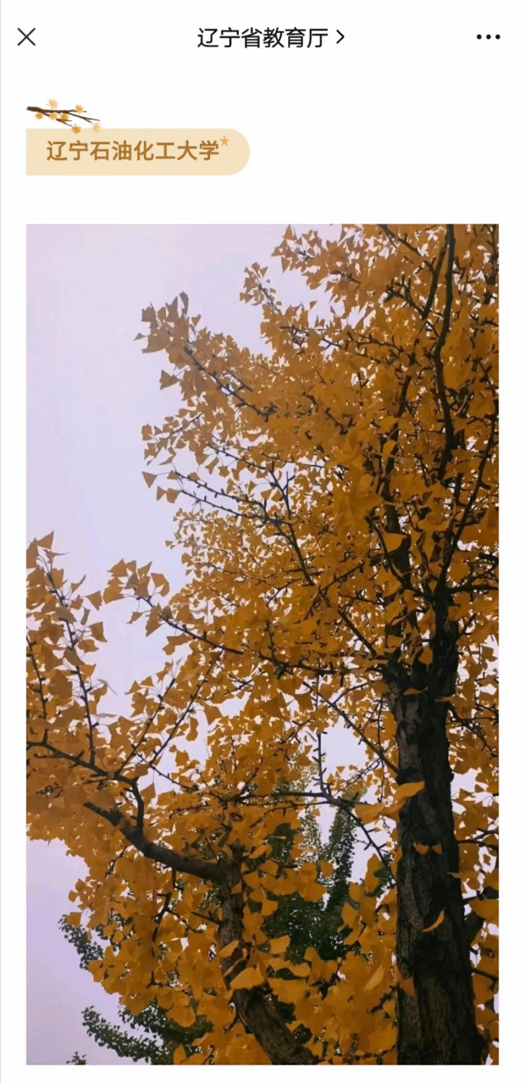 编者按:10月26日,辽宁省教育厅微信公众号以《秋色宜人 | 一起欣赏辽宁校园秋景吧!》为题,对辽宁高校校园秋景进行了宣传报道,其中收录了我校的美景图片。现将相关报道转载如下: