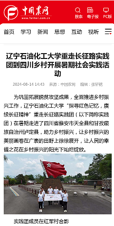 编者按:为巩固拓展脱贫攻坚成果,全面推进乡村振兴工作,我校经管学院“探寻红色记忆,赓续长征精神”重走长征路实践团在暑期走进了四川省雅安市天全县和甘孜藏族自治州泸定县,助力乡村振兴。8月14日,中国农网对此进行了宣传报道。现将相关报道转载如下: