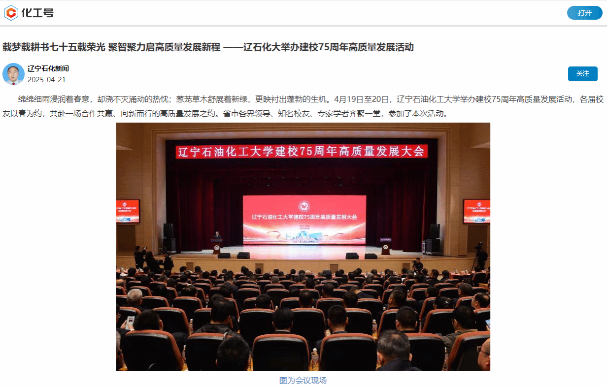 中国化工报化工号:载梦载耕书七十五载荣光 聚智聚力启高质量发展新程 ——辽石化大举办建校75周年高质量发展活动