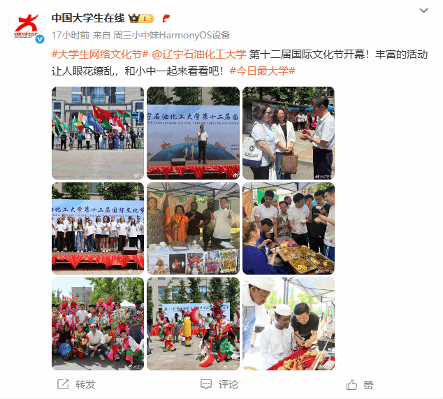 编者按:近日,我校第十二届国际文化节开幕!教育部中国大学生在线官方微博对此以图片的形式作了宣传。现将相关报道转载如下:
