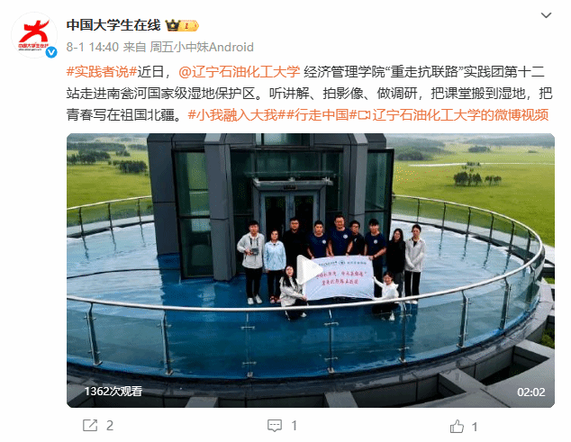 编者按:经济管理学院“重走抗联路”实践团第十二站走进南瓮河国家级湿地保护区。教育部中国大学生在线官方微博对此进行了宣传报道。现将相关报道转载如下: