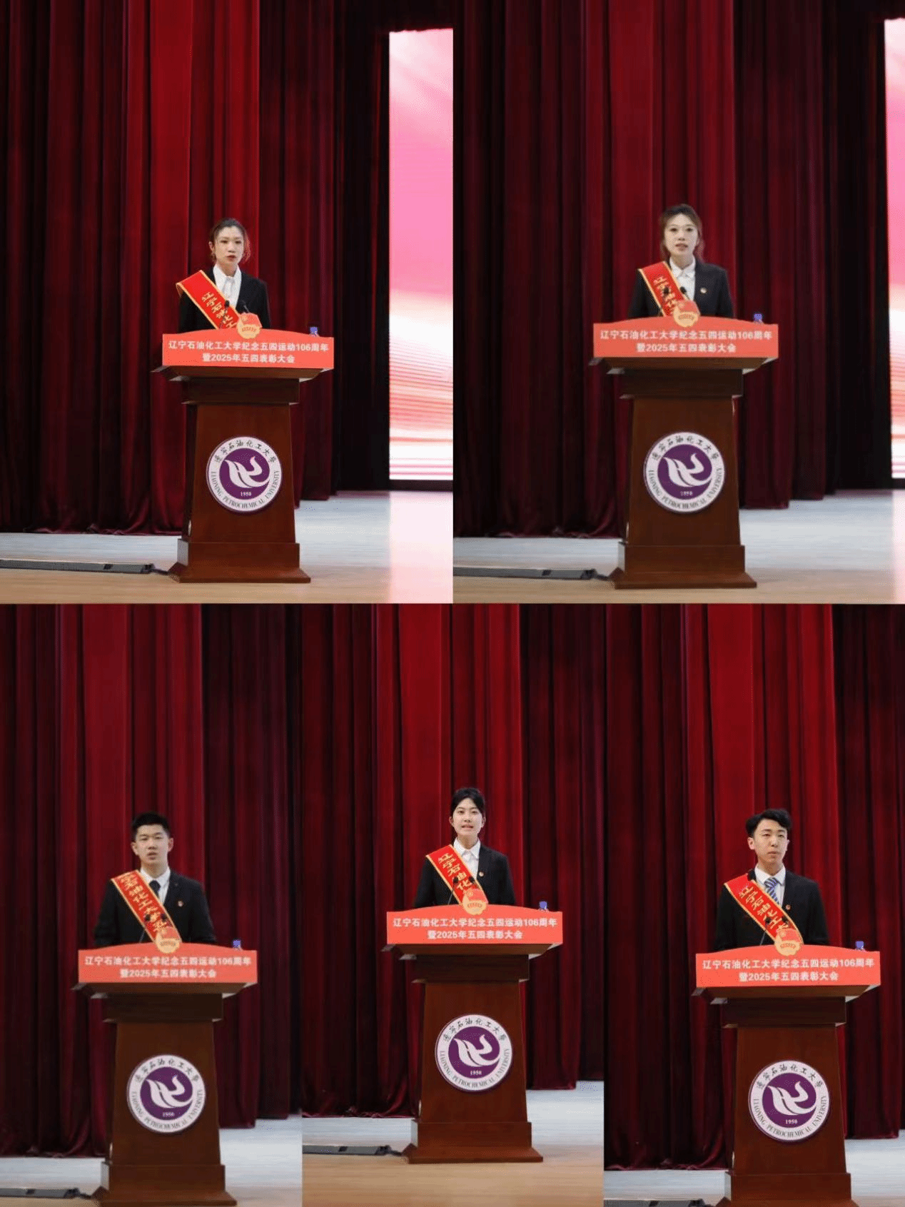 石油化工学院团委书记左浩淼、石油天然气工程学院储卓2201团支部副书记王涛、信息与控制工程学院自卓2302团支部邱紫桐、机械工程学院团委书记赵梦茁、校团委宣传部负责人陈煦阳分别代表五四红旗团委、五四红旗团支部、优秀共青团员、优秀共青团干部发言。